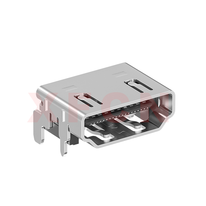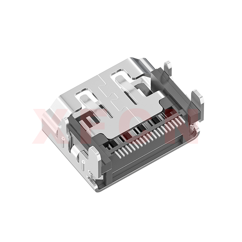 描述:HDMI-19pin,母座,铁壳镀镍,四脚插,SMT
