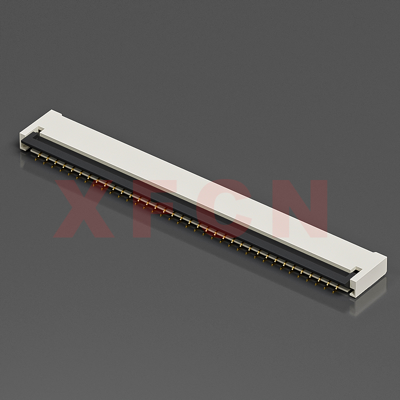 描述:FPC-1.0mm间距,卧贴后压式双面接,36位,高度2.0mm,镀金