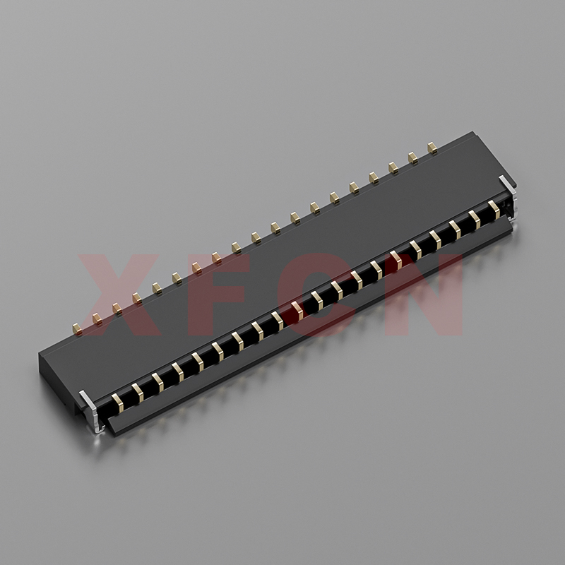 描述:FPC-0.3mm间距,卧贴掀盖式下接触,39位,高度1.0mm ,镀金