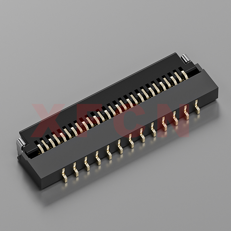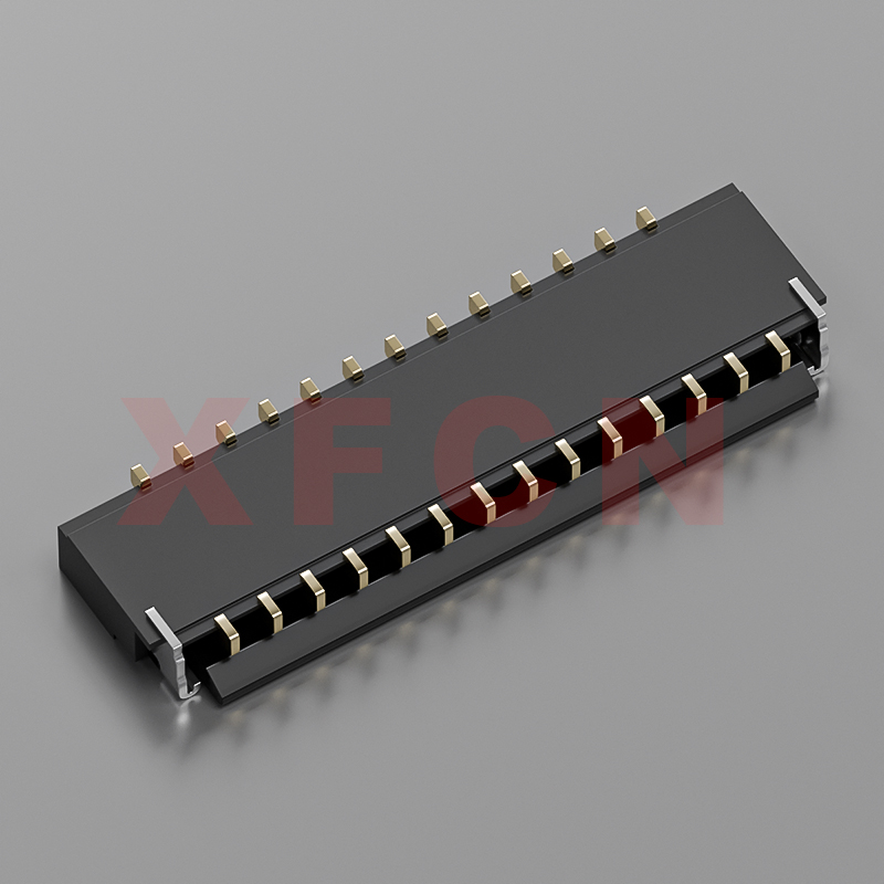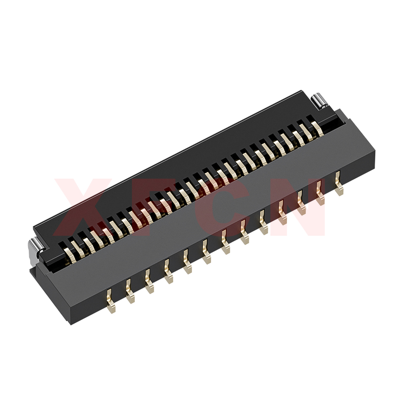 描述:FPC-0.3mm间距,卧贴掀盖式下接触,27位,高度1.0mm ,镀金