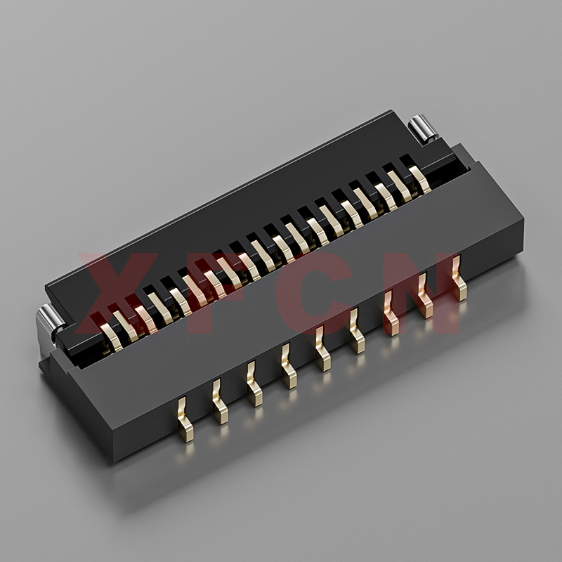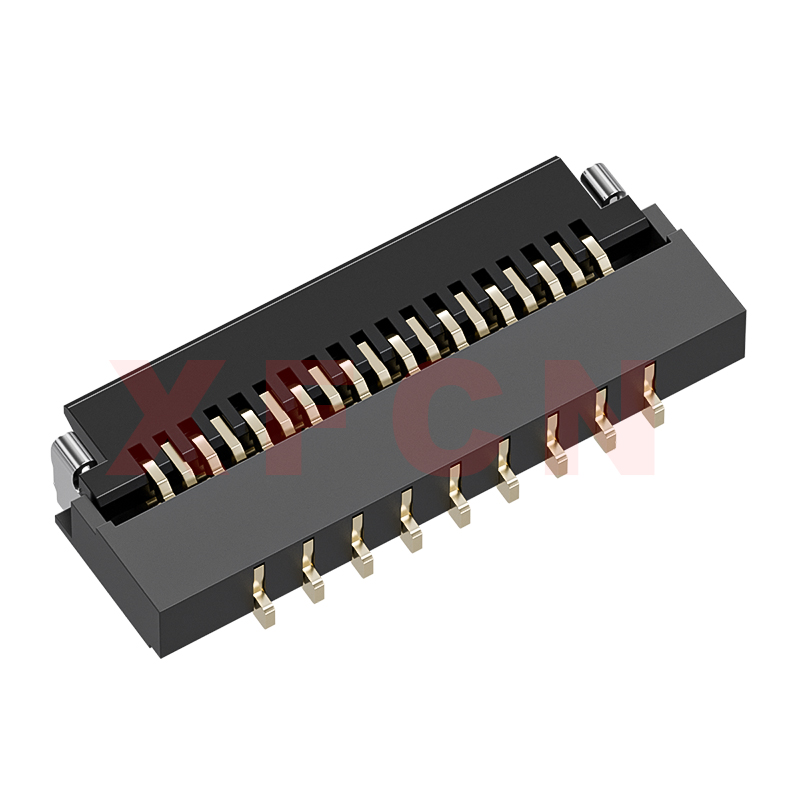 描述:FPC-0.3mm间距,卧贴掀盖式下接触,19位,高度1.0mm ,镀金