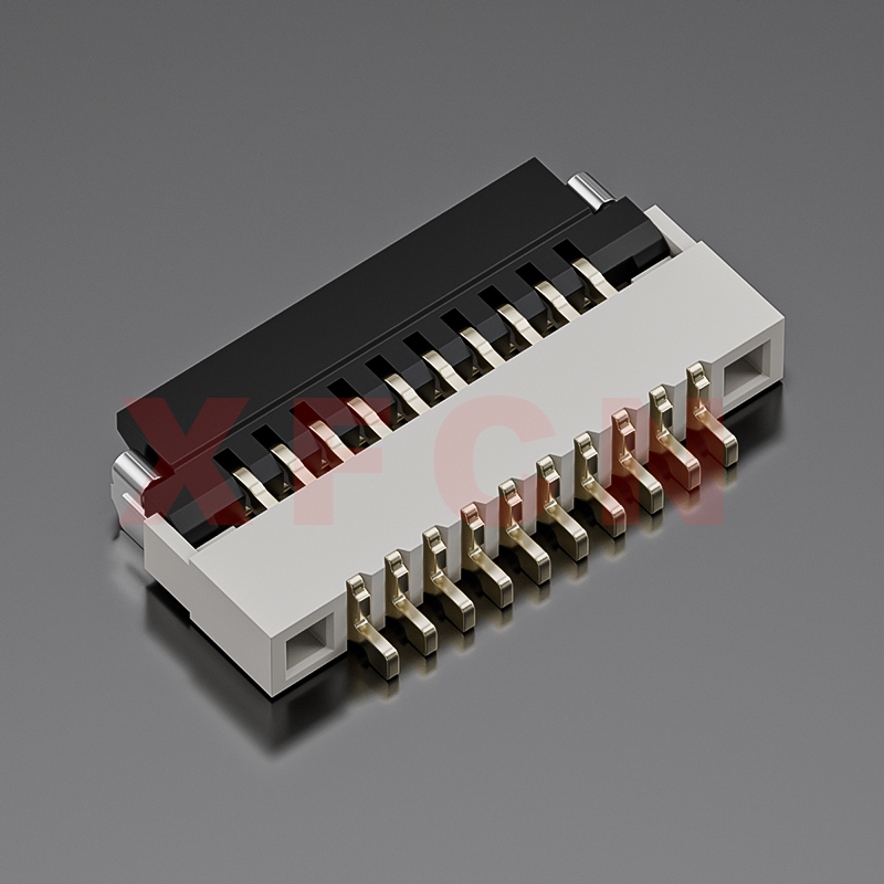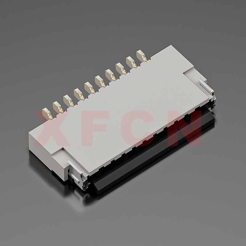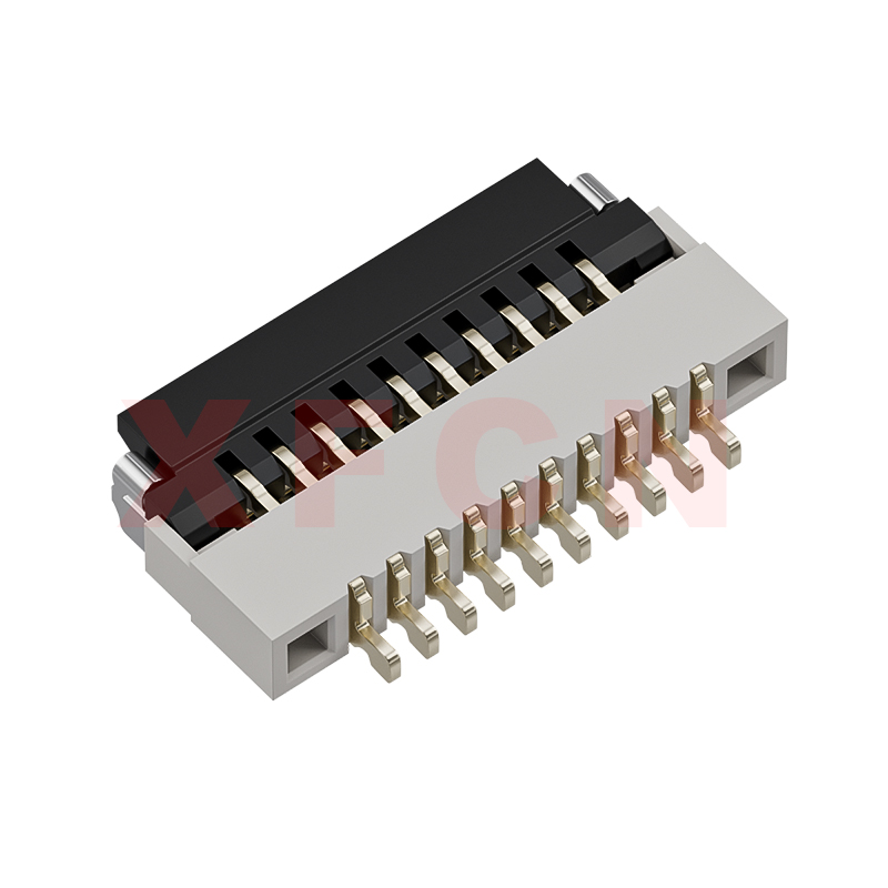 描述:FPC-0.5mm间距,卧贴掀盖式下接触,10位,高度1.0mm ,镀金