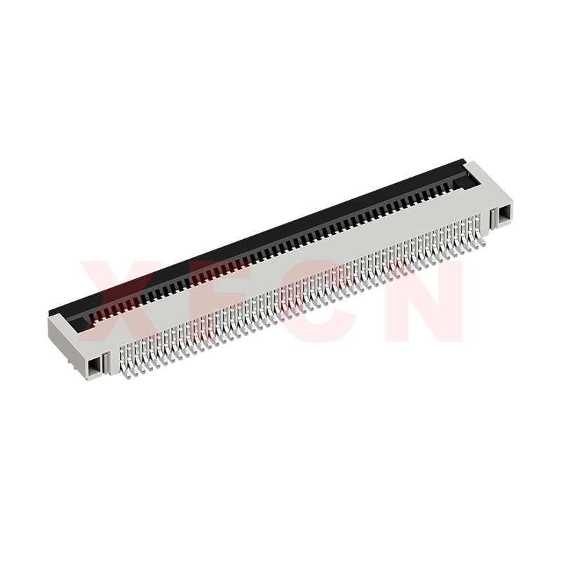描述:FPC-0.5mm间距,卧贴掀盖式下接触,50位,高度2.0mm