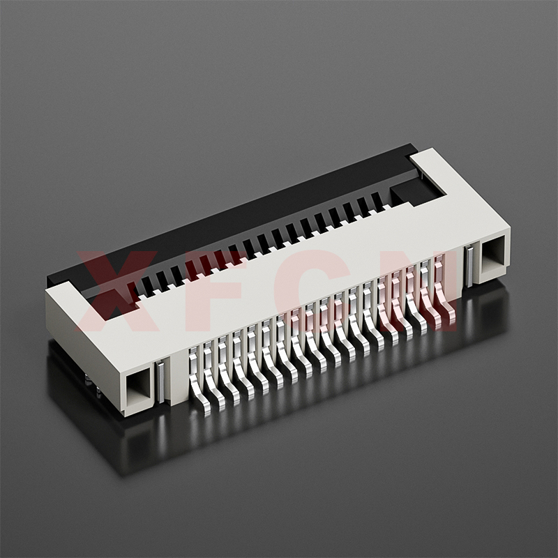 描述:FPC-0.5mm间距,卧贴掀盖式下接触,18位,高度2.0mm