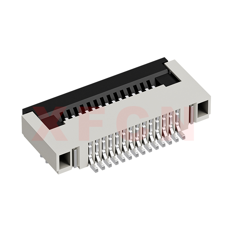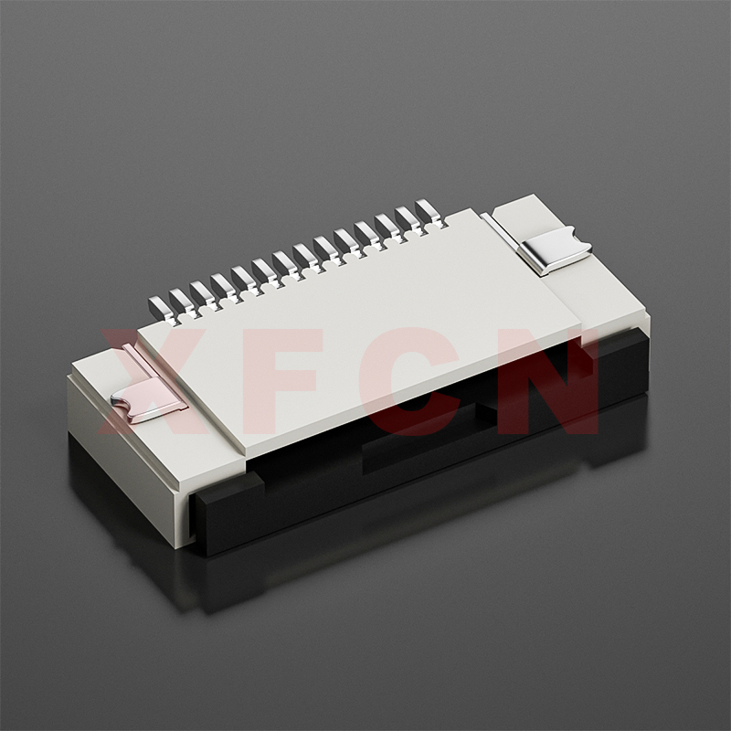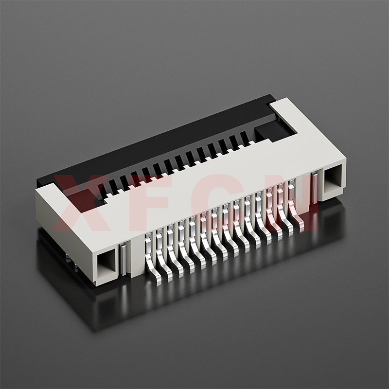 描述:FPC-0.5mm间距,卧贴掀盖式下接触,14位,高度2.0mm