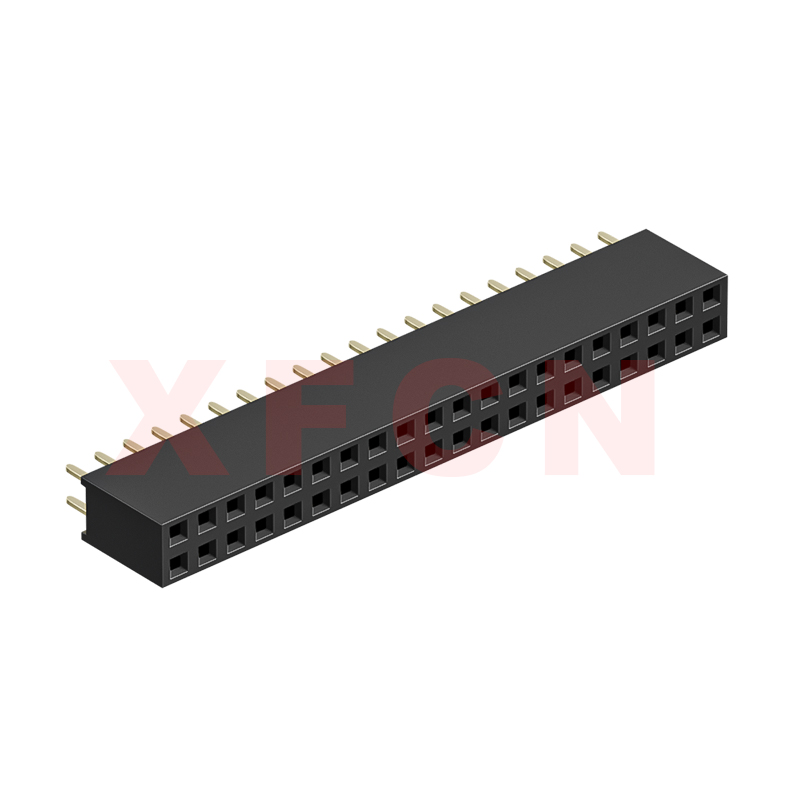 描述:排母-2.54mm间距,180°,DIP,40位,双排,PBT,H=8.5mm