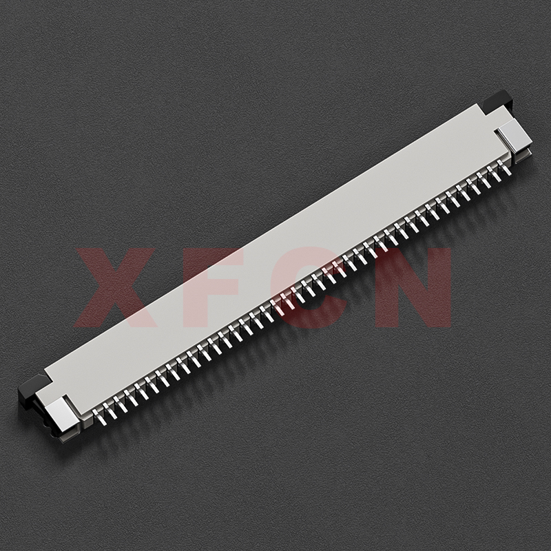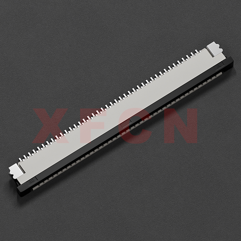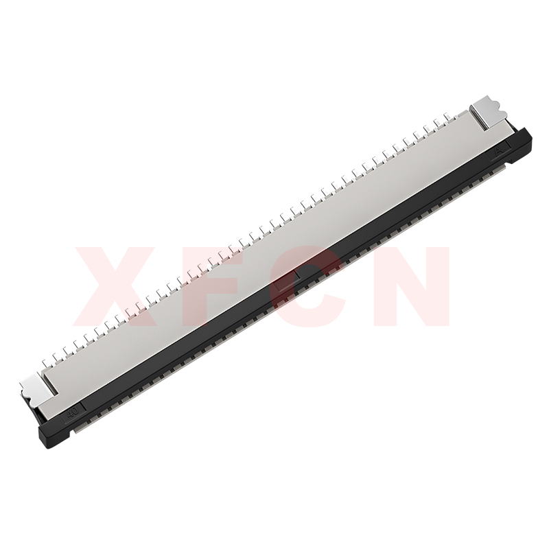 描述:FPC-1.0mm间距,卧贴拉拔式下接触,40位,高度2.5mm,
