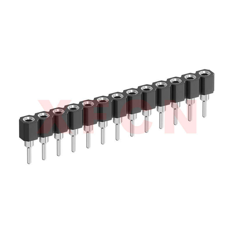 描述:圆孔排母-2.54mm间距,180°,DIP,13位,单排母座,H=3.0mm