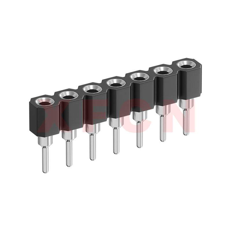 描述:圆孔排母-2.54mm间距,180°,DIP,07位,单排母座,H=3.0mm