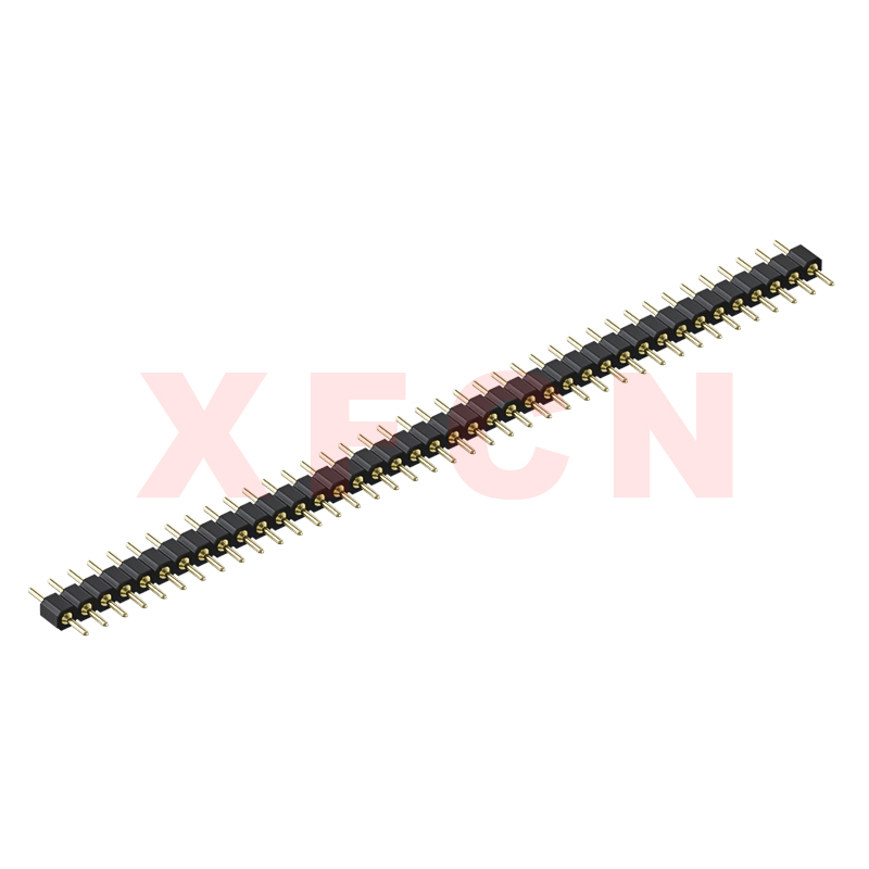 描述:圆孔排针-2.54mm间距,180°,DIP,40位,单排公座,H=3.0mm