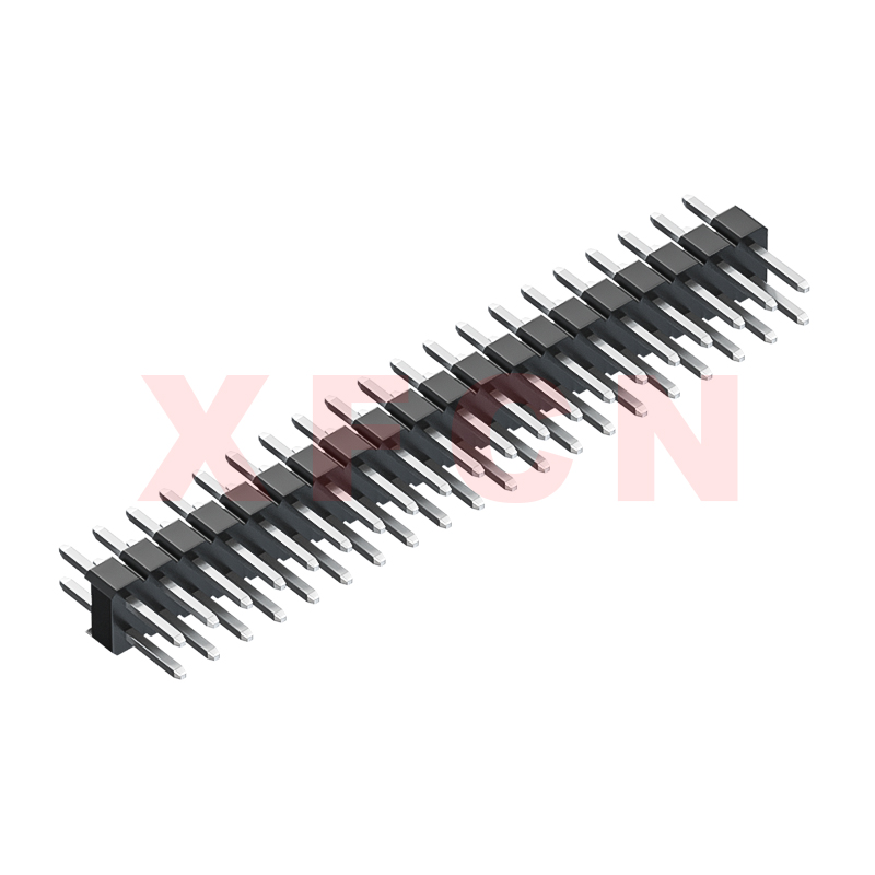 描述:排针-2.00mm间距,180°,DIP,40位,双排单塑