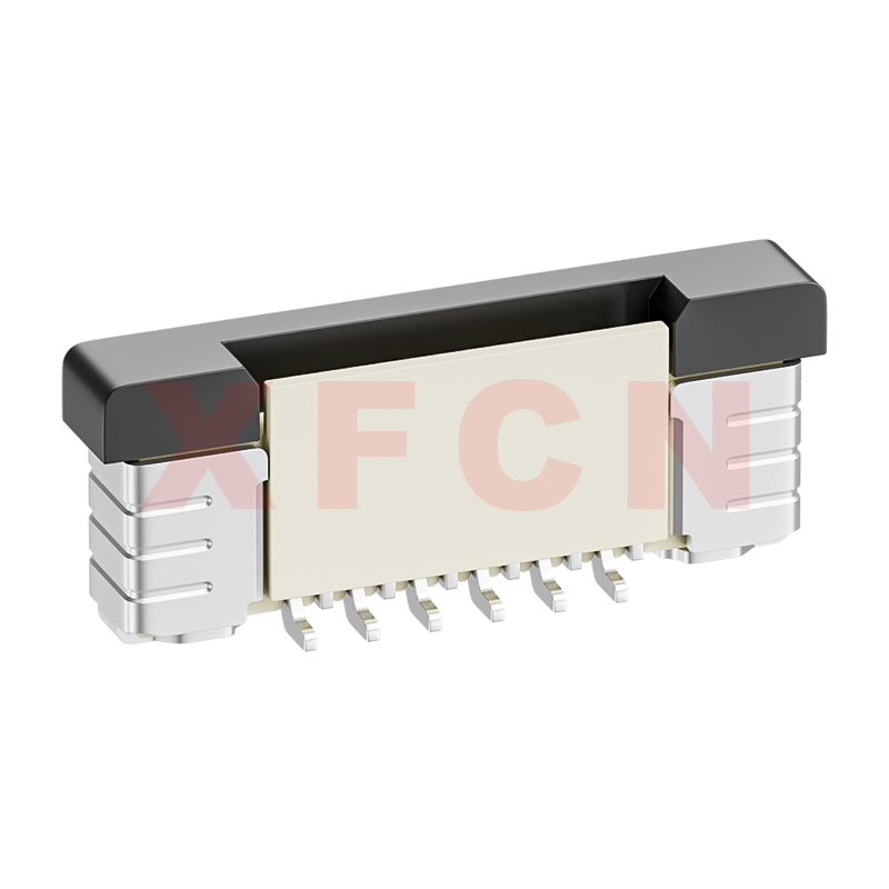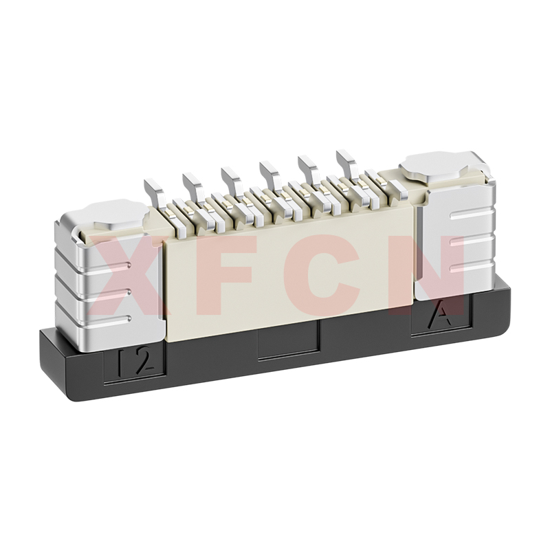 描述:FPC-0.5mm间距,全包抽屉式立贴正脚,12位,高度2.0mm,LCP高温料